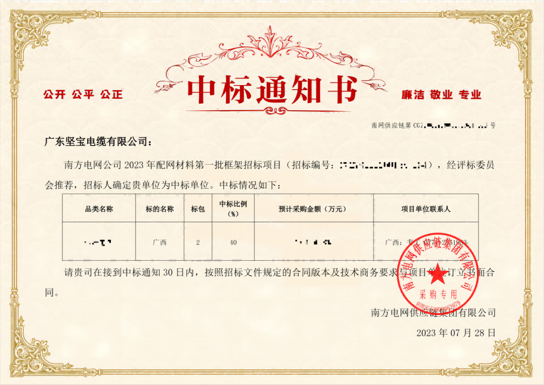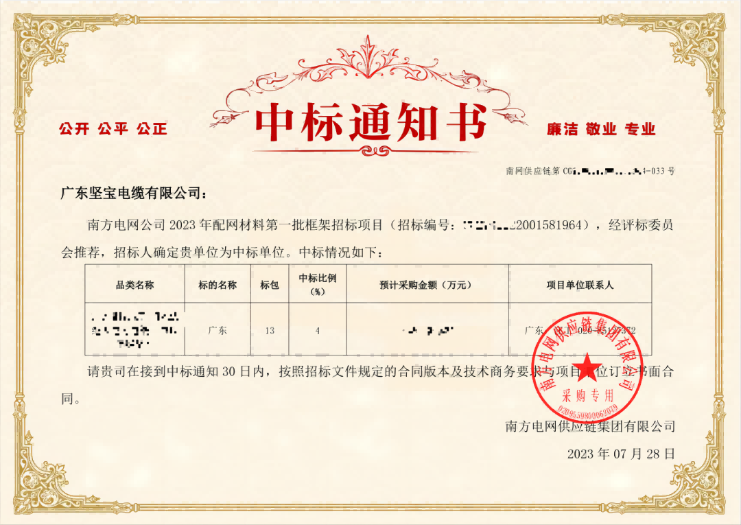 中标南方电网公司 2023 年配网材料第一批框架招标项目!