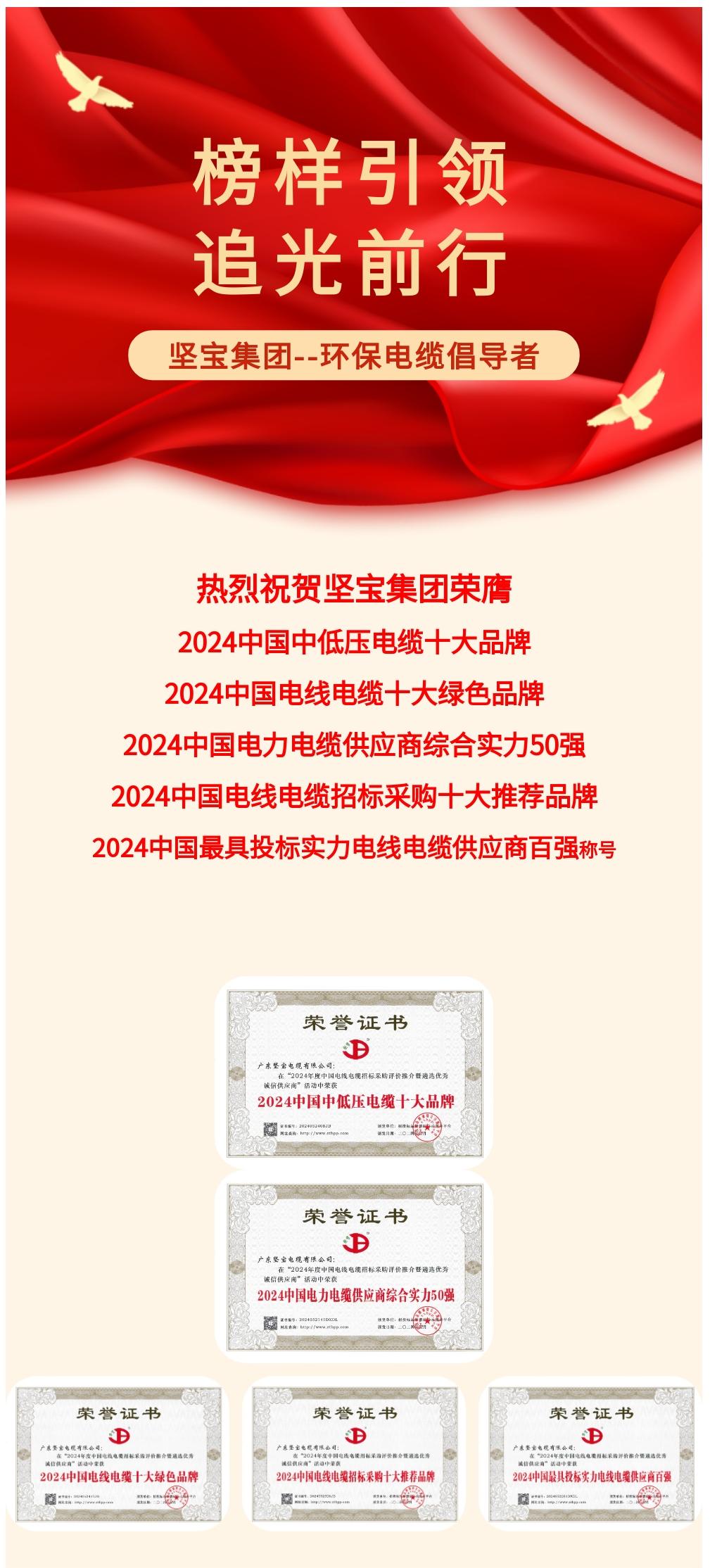 集团喜获2024中国电力电缆 供应商综合实力50强等多项荣誉